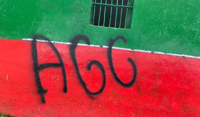 Las siglas del grupo armado Autodefensas Gaitanistas de Colombia (AGC) aparecieron en grafitis dibujados, al parecer, la madrugada del 2 de diciembre en diferentes paredes, puentes y estructuras del eje vial San Rafael-El Peñol.
