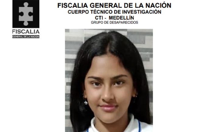 La menor, de 12 años de edad, es de contextura delgada, piel trigueña y tiene el cabello liso de color negro. El día de su desaparición vestía con camiseta rosada, buso rosado, jean negro y tenis blancos.