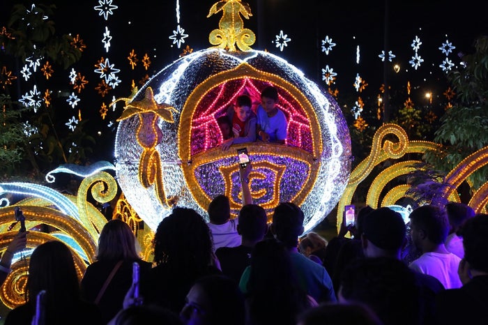 La ruta de los Alumbrados comienza en la Plazoleta de fuentes en inmediaciones del Puente de Guayaquil, donde un árbol de Navidad, de 25 metros de alto, decorado con elementos icónicos de las películas de Disney, recibe a la gente. De ahí se avanza por el Paseo del río, decorado con un cielo con 2.587 estrellas, en luces blancas y cálidas, que se extiende en 1,8 kilómetros hasta Parques del Río.