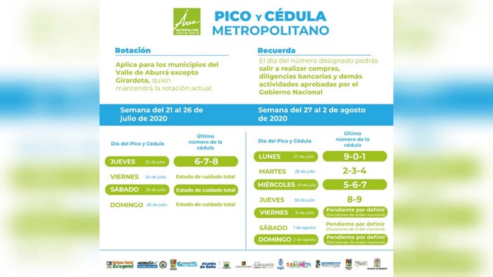 El Área Metropolitana del Valle de Aburrá manifestó que con esta medida que se implementará, la medida del pico y cédula, durante la semana en curso tendrá las siguientes modificaciones: