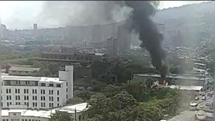 Bomberos controlan a esta hora incendio en fábrica de solventes en Bello