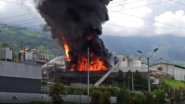 [Video] Bomberos controlan voraz incendio en una empresa de pinturas en Girardota, Antioquia