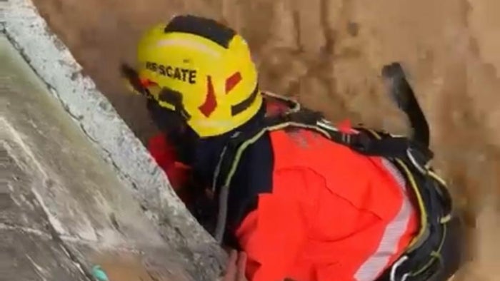 Para llevar a cabo el rescate, uno de los integrantes del cuerpo de bomberos descendió con un arnés hasta el fondo de la quebrada, donde logró capturar al gatito con cuidado. Tras unos minutos de maniobras, el animalito fue subido a la superficie sano y salvo, generando gran alivio y alegría entre los presentes.