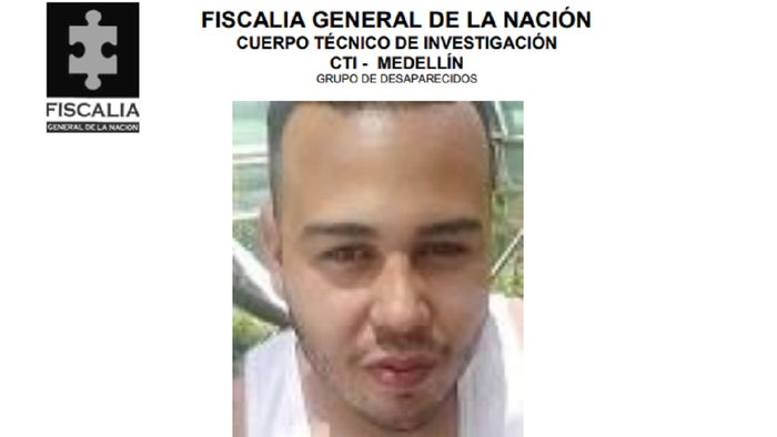 El hombre, de 28 años de edad, es de contextura mediana, piel trigueña y tiene el cabello crespo de color castaño oscuro. El día de su desaparición vestía con camiseta negra, buso negro con letras en la parte de delante de color amarillo, gorra negra, jean azul oscuro y tenis color gris con zapote, además llevaba un morral negro.