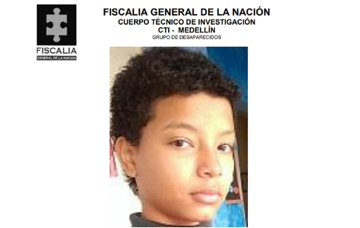 María José Gómez Duque desapareció el pasado 9 de enero. Según el informe del Grupo de Desaparecidos del CTI de la Fiscalía, la menor, de 13 años de edad, salió del Hogar La Libertad de la vereda Pajarito, del corregimiento de San Cristóbal de Medellín, y desde ese momento se desconoce su paradero.