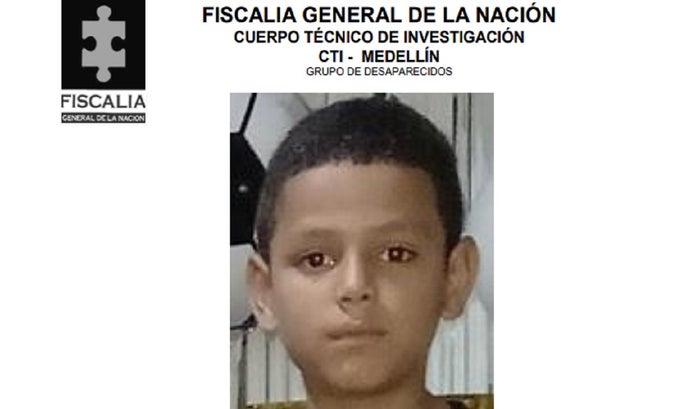 El menor, de 9 años de edad, es de contextura delgada, piel blanca y tiene el cabello crespo de color castaño oscuro. El día de su desaparición vestía con camiseta negra con un estampado color blanco y bermuda negra con flores blancas.