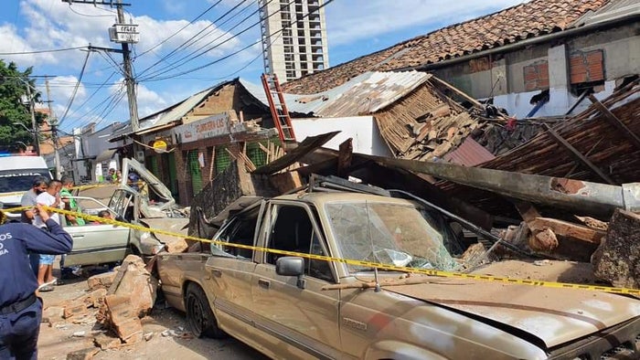 Uber Zapata Director de Gestión del Riesgo Bello, informó que la estructura al caer hacia la parte de afuera , afectó dos automóviles los cuales quedaron en pérdida total.