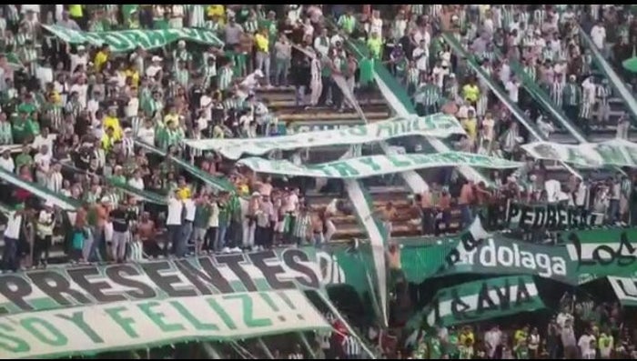Cuando saltaban sostenidos de una bandera, cinco hinchas de Atlético Nacional cayeron del segundo piso de la tribuna sur del estadio Atanasio Girardot. Al parecer, la tela se desprendió, provocando que los aficionados perdieran el equilibrio.