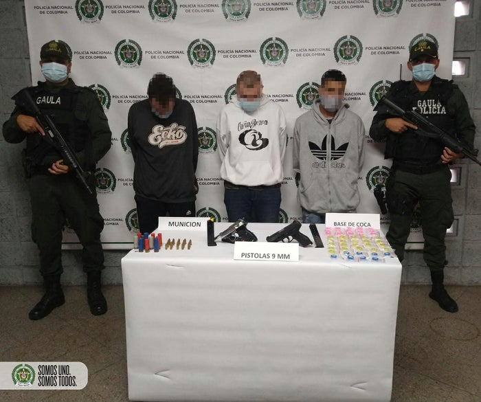 En el despliegue operacional fueron detenidos alias “gato” de 25 años, coordinador de este grupo criminal en el sector de La Virgen, y un integrante de 20 años, precisó el oficial.