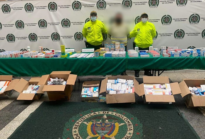 También se encontró gran cantidad de medicamentos los cuales ingresaron al país de forma irregular ya que no cuentan con la aprobación por parte del INVIMA, así lo manifestó el subcomandante de la policía Metropolitana, coronel Camilo Torres Pineda, al indicar que en el dispositivo fue capturada una persona. Igualmente, aseguró que la mercancía decomisada tiene un valor en el mercado de 50 millones de pesos.