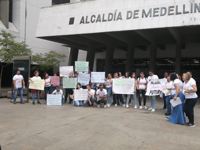 Funcionarios de las diferentes comisarías de familia de la capital antioqueña realizaron una manifestación, en la entrada de Alcaldía de Medellín, solicitando mayor atención frente a las necesidades que atraviesan por la disminución sustancial en el presupuesto para su operación.