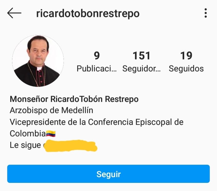 La Arquidiócesis de Medellín denunció la creación de un perfil falso en Instagram con la fotografía, el nombre y el cargo del arzobispo de la ciudad, monseñor Ricardo Tobón Restrepo.