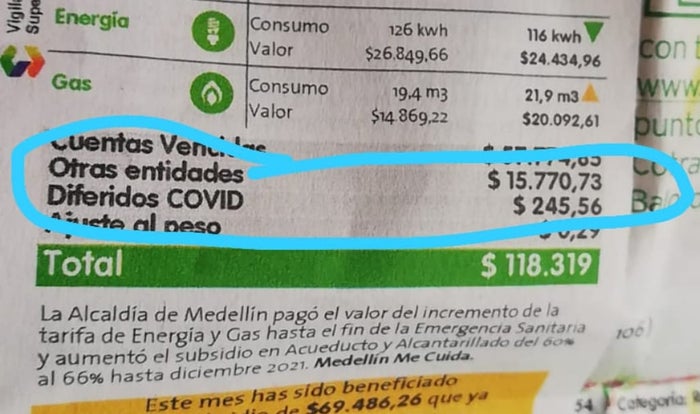 Empresas Públicas de Medellín le salió al paso a las críticas de algunos usuarios frente al cobro diferido del COVID, el cual llega cada mes en la cuenta de servicios públicos.