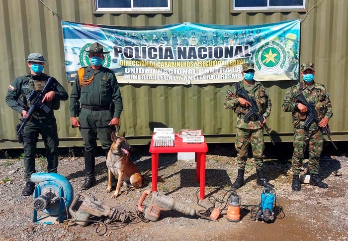 El Coronel Luis Fernando Arcos Alvarez, coordinador Nacional del Servicio Rural de la Policía, detalló que con este material detonante abrían socavones en la montaña en búsqueda de oro, afectando la integridad a la población y al medio ambiente.