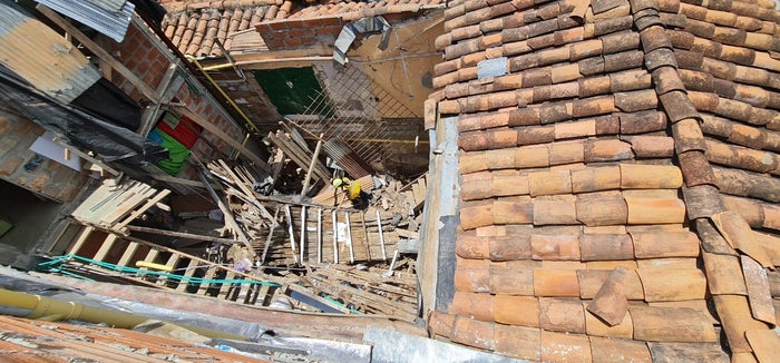 En este sitio hizo presencia personal del cuerpo de Bomberos de Medellín y del Departamento Administrativo de Gestión del Riesgo de Desastres, DAGRD, quienes luego de realizar una inspección técnica, recomendaron la evacuación temporal de tres viviendas aledañas por el riesgo que ofrecen luego del desplome ocurrido.