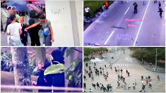 El comandante operativo de la Policia Metropolitano del Valle de Aburrá coronel Iván Darío Santamaría Montoya señaló que el panorama en estos momentos en las inmediaciones de la Universidad de Antioquia, es que algunos manifestante atacan a la Fuerza Pública con papas explosivas, piedras y bombas molotov.