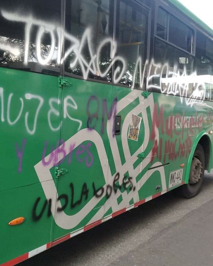 Según la policía, las marchas, convocadas para conmemorar el Día Internacional de los Derechos de las Mujeres, terminaron en un enfrentamiento con el ESMAD en medio de actos vandálicos contra varias edificaciones.