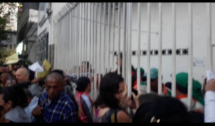 La convocatoria desbordó la capacidad y los empleados de la Fundación tuvieron que recibir la documentación a través de una reja. Hubo mucha molestia de los ciudadanos porque consideraron que no hubo logística ni orden para atender a esta población desempleada.