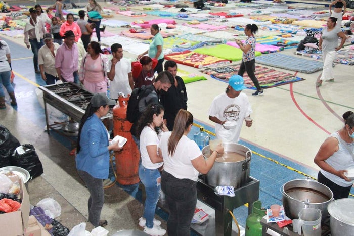 Alimentos no perecederos y productos de aseo personal son algunas de las ayudas que se están recibiendo en el coliseo principal de San Carlos, Oriente antioqueño, donde están albergadas la mayoría de las 600 familias damnificadas por las inundaciones tras un fuerte aguacero.