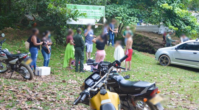 En la reserva ecológica Los Popales de Segovia, nordeste antioqueño, las autoridades sorprendieron al menos a 45 personas consumiendo licor, acampando y disfrutando del río y las montañas, violando el aislamiento preventivo.