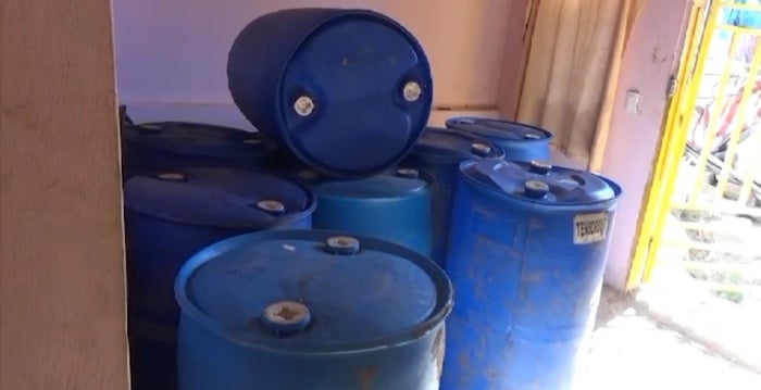 Los policías indagaron y revisaron el vehículo, al cual le hallan una manguera que conducía a una residencia, al interior de la vivienda, los uniformados hallaron 135 galones más de gasolina.