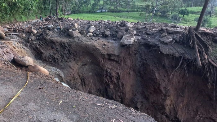 Los organismos de socorro indicaron que en esta zona se presentó el hundimiento total de la vía, por lo que no hay paso en ambos sentidos entre Medellín y Fredonia, afectado, además, las vías que conducen desde el barrio Antonio Roldán y el sector Amparo. A esta situación, se suman, también, varias inundaciones en la vereda Palomos.