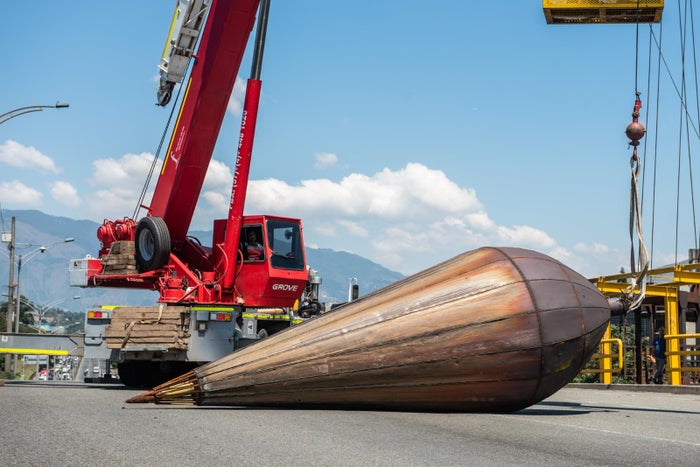 En el procedimiento que culminó con éxito, participaron grúas y personal especializado para el trabajo en altura, por lo que fue necesario realizar el cierre vial en la autopista Norte durante varias horas, hasta que finalizó el desmonte de la estructura de seis metros de alto por dos de ancho y con un peso de unos 800 kilos.