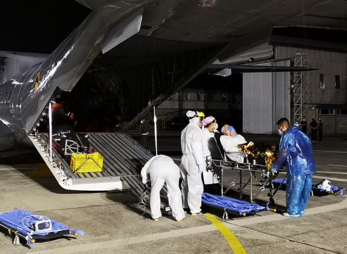 Cortesía: Fuerza Aérea. Los pacientes son trasladados con estrictos protocolos de bioseguridad.