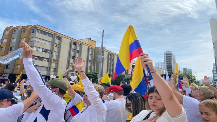 Por su parte, Sofía Restrepo, manifestó “Como víctima de la violencia, donde me tocó desplazarme de mi municipio porque me amenazaron de secuestro, marcho cansada por la situación que vive en estos momentos el país y por supuesto por la recuperación de Miguel Uribe Turbay”