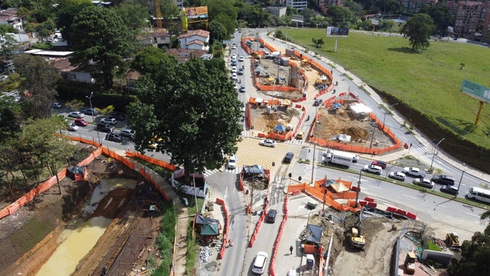 En esta zona del suroriente de Medellín, se ejecuta la construcción de la segunda calzada de la avenida 34 a la altura de la calle 9 sur, incluida la construcción de dos puentes para los costaros occidental y oriental, sobre el cruce de la calle 9 sur y obras complementarias.