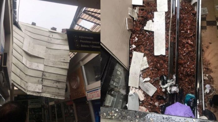 De acuerdo con las imágenes tomadas por algunas personas que estaban en ese momento en el centro comercial, parte del techo quedó colgando y la otra cayó sobre unas escaleras eléctricas. Por fortuna no se presentaron más lesionados.