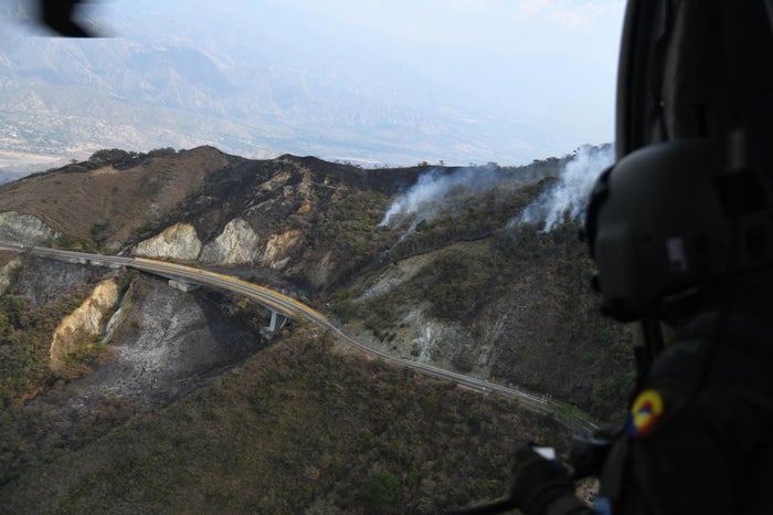 Cabe resaltar que por la complejidad del incendio, los fuertes vientos y la carga térmica alta en el sector, fue necesario el apoyo aéreo, gracias a las coordinaciones realizadas entre la Unidad Nacional para la Gestión del Riesgo de Desastres (UNGRD) y el Centro Nacional de Recuperación de Personal; CENRP, es así como un helicóptero UH-60 con el sistema Bambi Bucket del Comando Aéreo de Combate No 5 se unió a las labores para controlar este incendio.