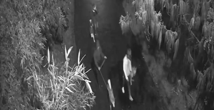El hecho quedó registrado en cámaras de seguridad del sector donde al parecer dos hombres y una mujer abandonan a los caninos en el sitio y escapan corriendo del lugar.