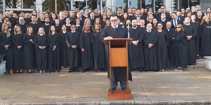 Vestidos con sus togas, los jueces Penales del Circuito de Medellín y de Antioquia, así como los administrativos, realizaron un acto simbólico en las afueras del Palacio de Justicia de la capital antioqueña.