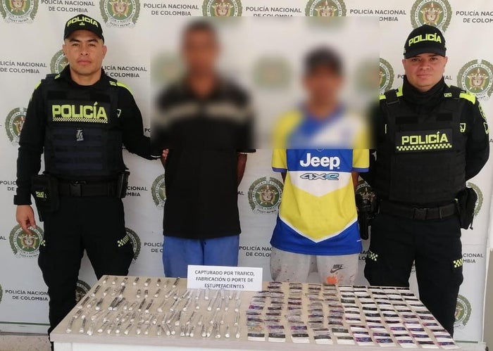 La policía capturó a dos supuestos jíbaros cuando pretendían comercializar más de 80 cigarrillos de marihuana y 170 graos de base de cocaína en la vereda La Sagrada familia del municipio de La Estrella, sur del Valle de Aburrá.