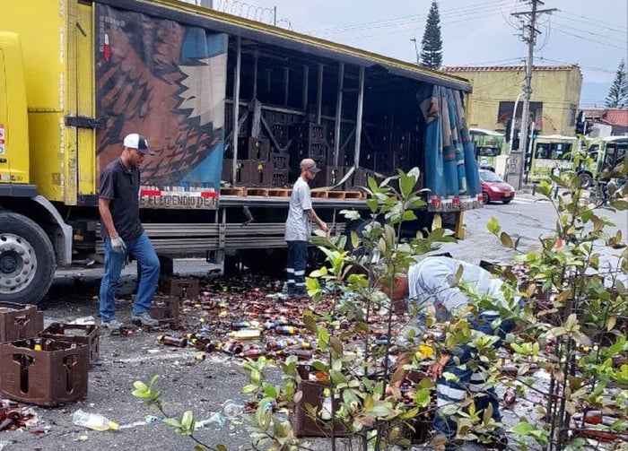 El incidente ocurrió en la avenida 80 cerca al Éxito de Robledo, donde a un camión se le cayeron las cervezas en plena vía. Según las primeras versiones, el hecho ocurrió en sentido sur – norte.