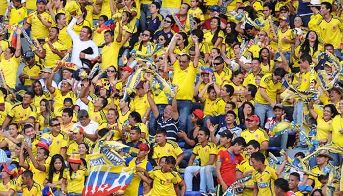 Hinchas festejando por Colombia