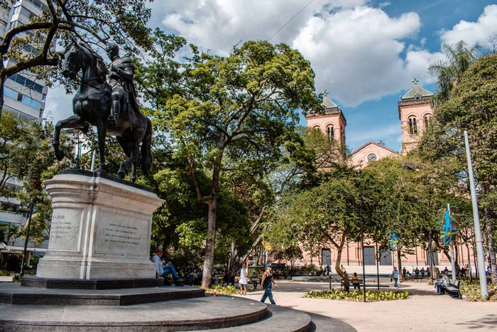 Un joven motociclista falleció luego de ingresar al parque de Bolívar y chocar de frente contra la estatua del Libertador ubicada en esta zona del centro de Medellín.