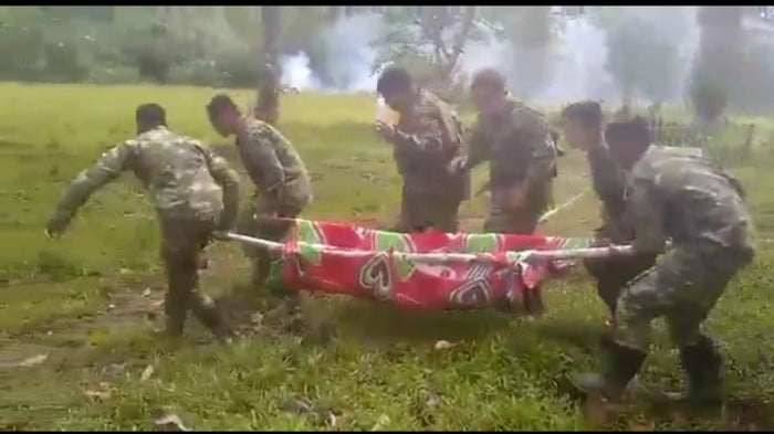 La mujer, quien pertenece a la comunidad de Amparradó Medio, fue víctima de la activación de esta mina antipersonal cuando caminaba cerca a su resguardo.Una vez conocida la situacion, soldados llegaron al lugar y le brindaron los primeros auxilios.