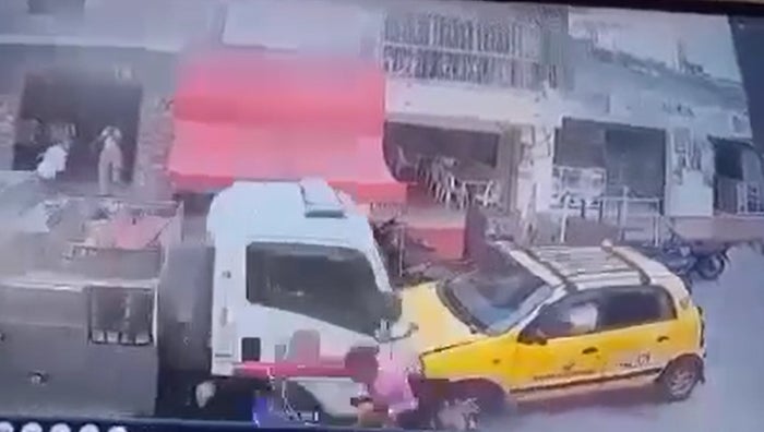 El accidente se registró en zona céntrica del municipio, y según las autoridades, el carro de bomberos se movilizaba a alta velocidad para atender una emergencia en una vivienda, específicamente un incendio, cuando arrolló a las dos personas que estaban estacionadas en una moto y colisionaron contra un taxi.