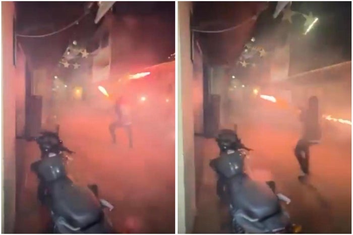 Los videos evidencian la alta peligrosidad de la actividad, mostrando a los participantes protegiéndose con sacos para evitar quemaduras, mientras la pirotecnia impacta constantemente sus cuerpos.