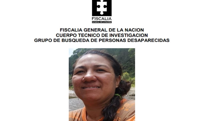 La mujer, de 50 años de edad, es de contextura mediana, piel trigueña y tiene el cabello liso de color castaño oscuro.