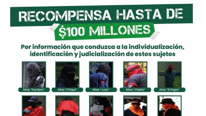 El cartel ofrece una recompensa de hasta 100 millones de pesos por información que permita ubicar, identificar, capturar y judicializar a las personas incluidas en el listado.