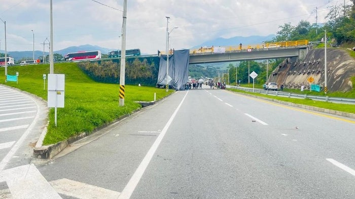 Según el último reporte de las autoridades, el bloqueo en la vía permanece en el corregimiento de Porce, en jurisdicción del municipio de Santo Domingo, Nordeste antioqueño y cuenta con el acompañamiento de la policía nacional.