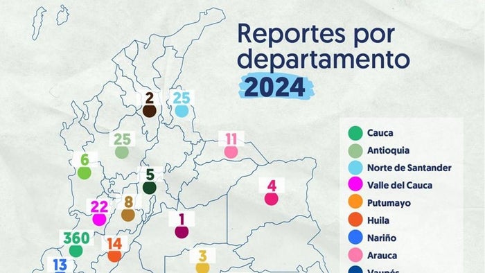 De acuerdo con la Defensoría del Pueblo, para el caso del 2024, el monitoreo institucional identificó 541 casos de reclutamiento de menores de edad, de ellos, 325 fueron niños y adolescentes y 216 niñas y adolescentes. De estos casos, el Cauca encabeza la lista con 360 menores víctimas, seguido de Antioquia con 25 casos.