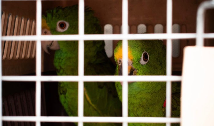 Entre los animales se encuentran una guacamaya azul y amarilla, una guacamayeja y dos loros frentiamarillo que, al vivir en cautiverio, se encontraban en condiciones deplorables.