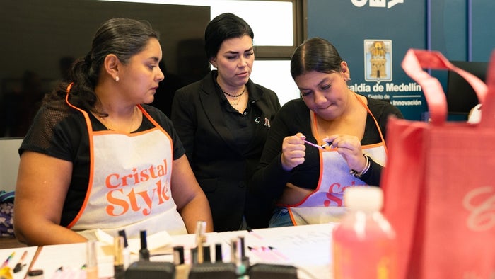 La Alcaldía de Medellín y la empresa Cristal Style lideraron un ciclo para capacitar a más de 200 mujeres en esmaltado semipermanente y efectos cristal, una técnica con alta demanda en el sector de la belleza.