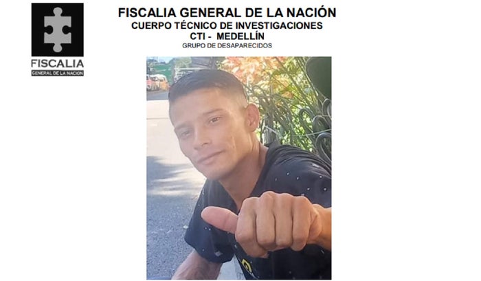 Jorge Andrés Torres Arboleda desapareció el pasado 23 de agosto. Fue visto por última vez en el barrio Vallejuelos de Medellín.