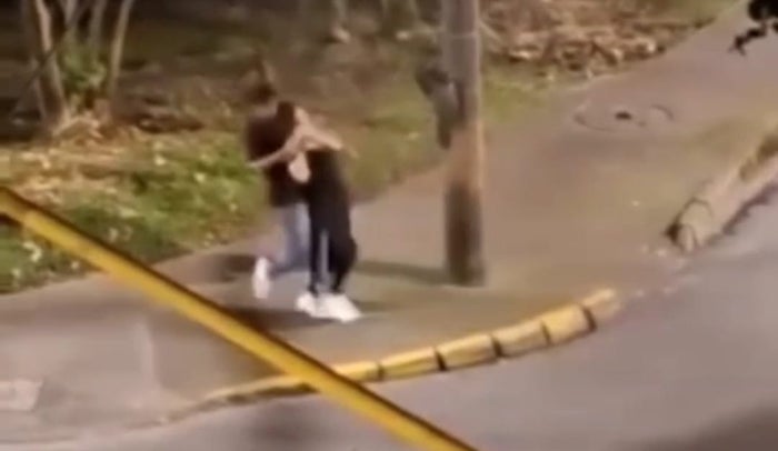 El video, que ha circulado ampliamente en redes sociales, muestra a la pareja en medio de una discusión. De un momento a otro, el hombre toma a la mujer por detrás con fuerza y de forma agresiva. Un motociclista que presenció la escena detuvo de inmediato su vehículo e intervino para enfrentar al agresor. En ese instante, otras personas se sumaron para ayudar a la víctima y controlar la situación.