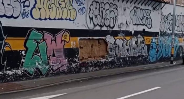 Habitantes de la ciudad de Medellín han manifestado preocupación por el riesgo de colapso de un muro construido en material tapial cerca al centro de la ciudad, específicamente en la calle 50 con carrera 43.